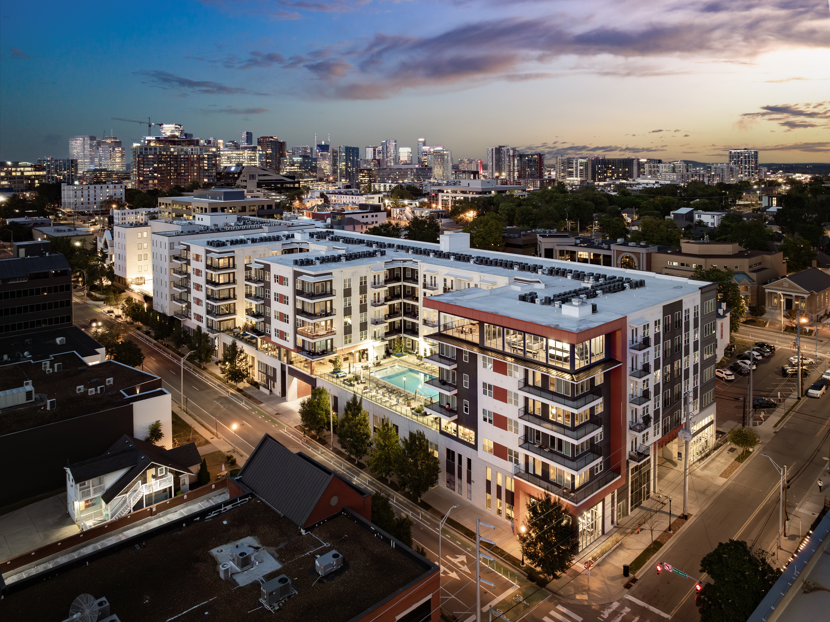 Dramatic exterior photos taken during sunset/dusk